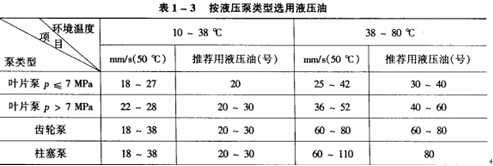 一假情況,按液壓泵類型選用液壓油,如表1-3所示。當(dāng)然,也可鎖液壓元件產(chǎn)品說明書中推薦的牌號選用液壓油。